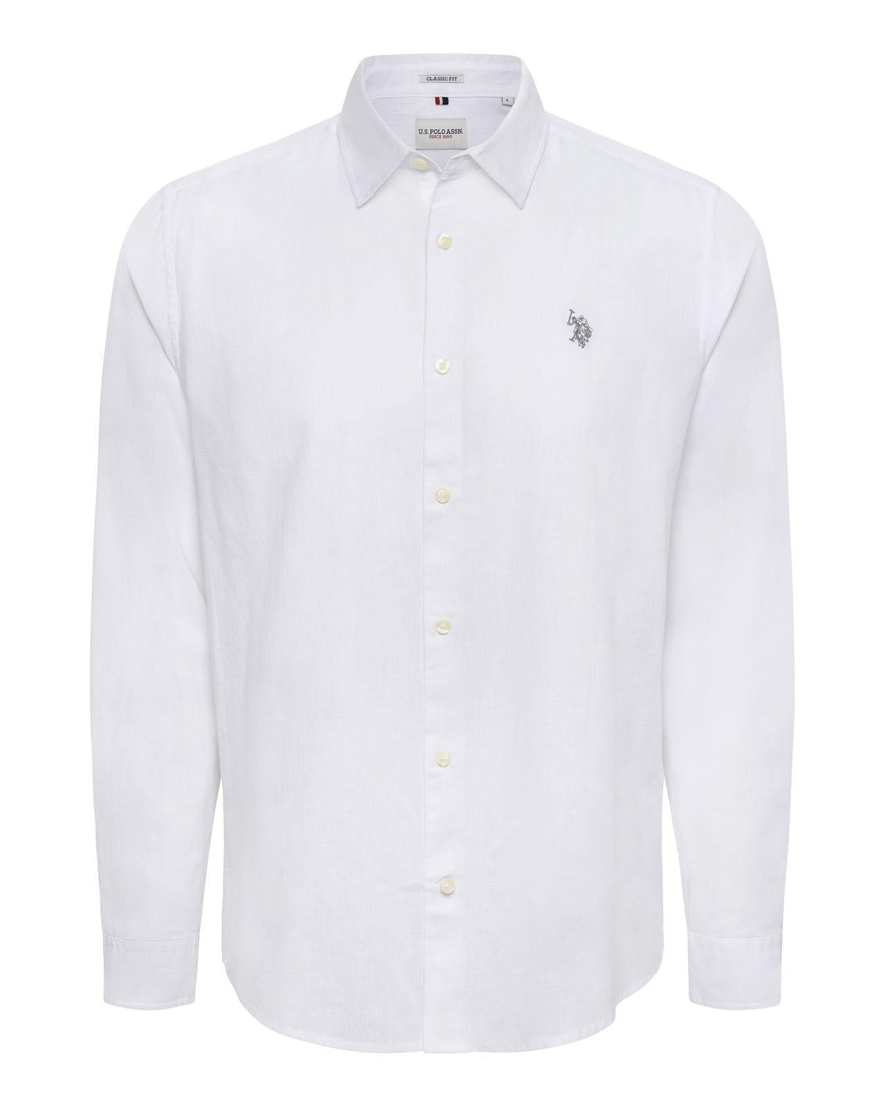 The Polo Club Men's Linen Woven Shirt White