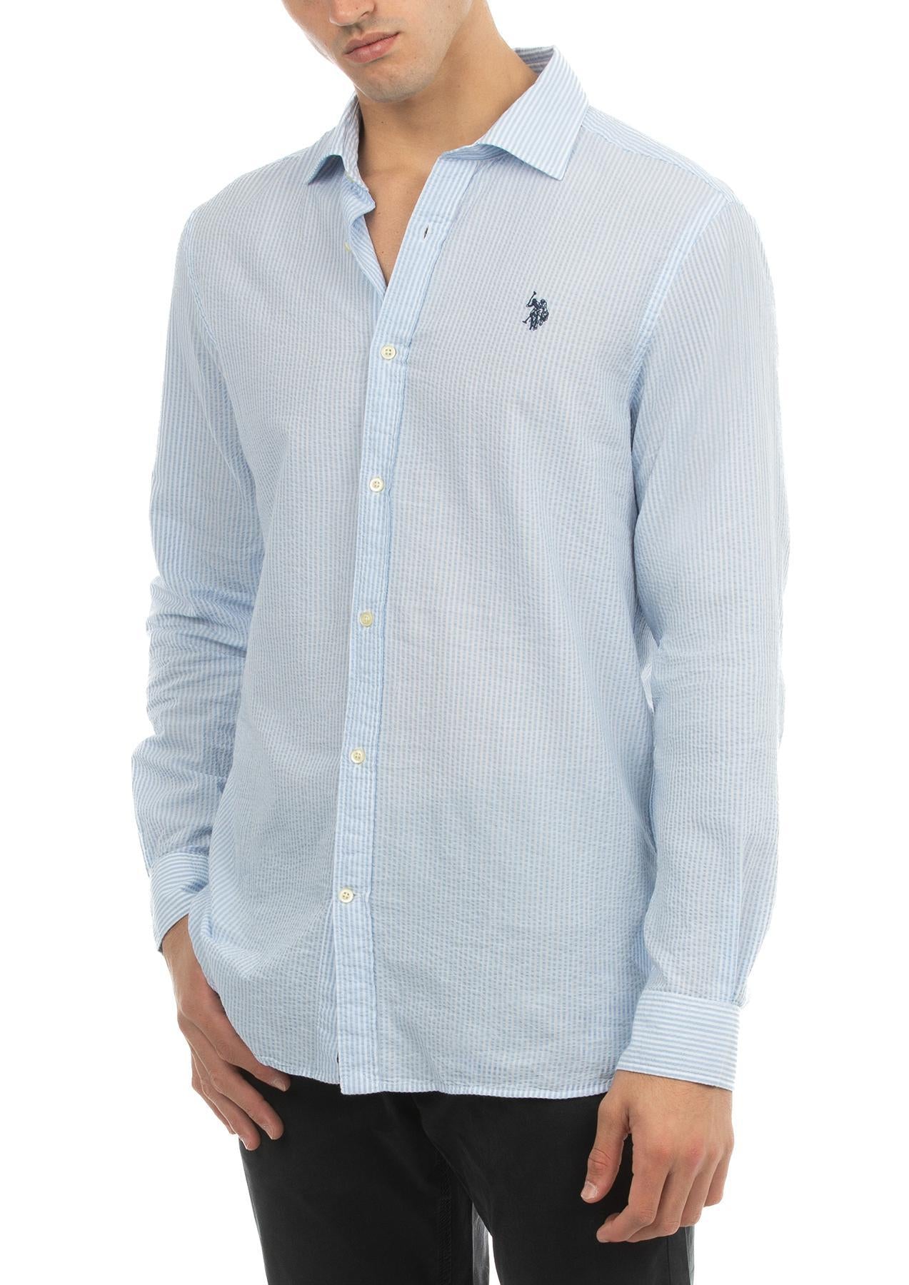 USPA Men's Straight Collar Seersucker Striped Shirt Light Blue