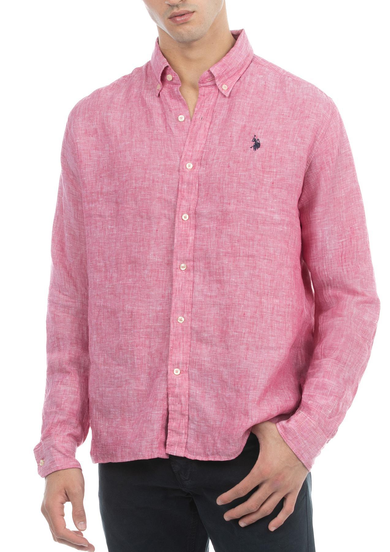 USPA Men's Linen Button-Down Collar LS Shirt Pink