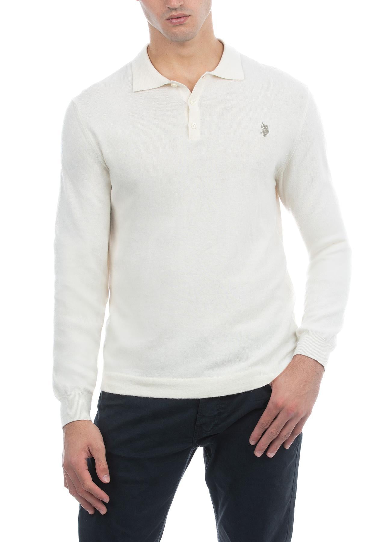 USPA Men's Alpaca/Cotton LS Sweater Knit Polo White