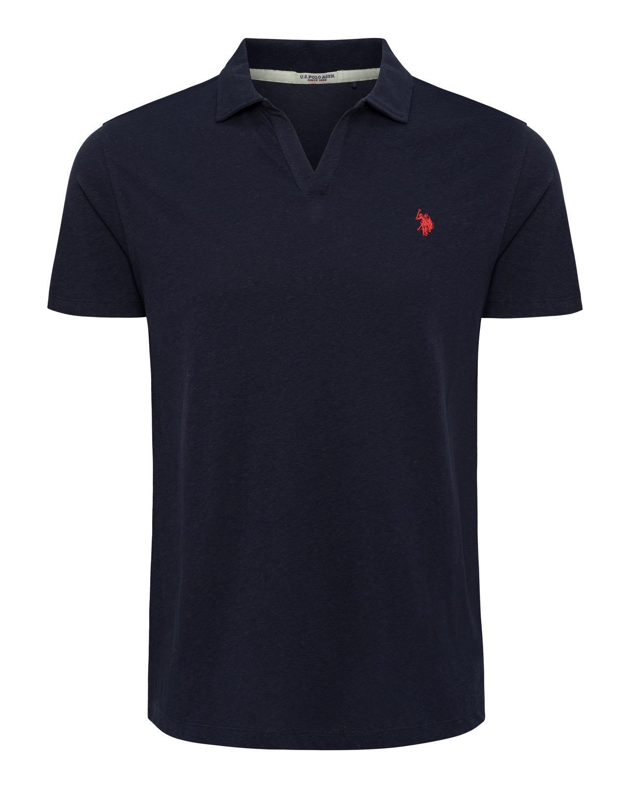 USPA Men's Johnny Collar Linen Polo Navy