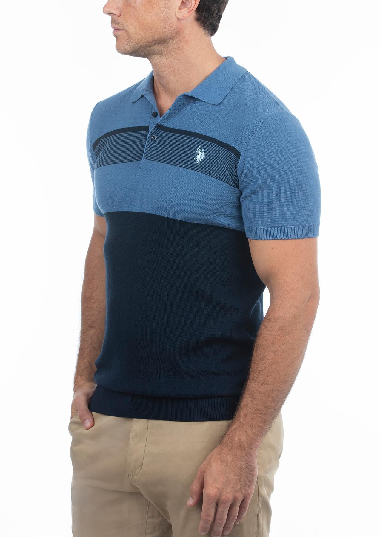 USPA Men's Stripe Knit Polo Blue