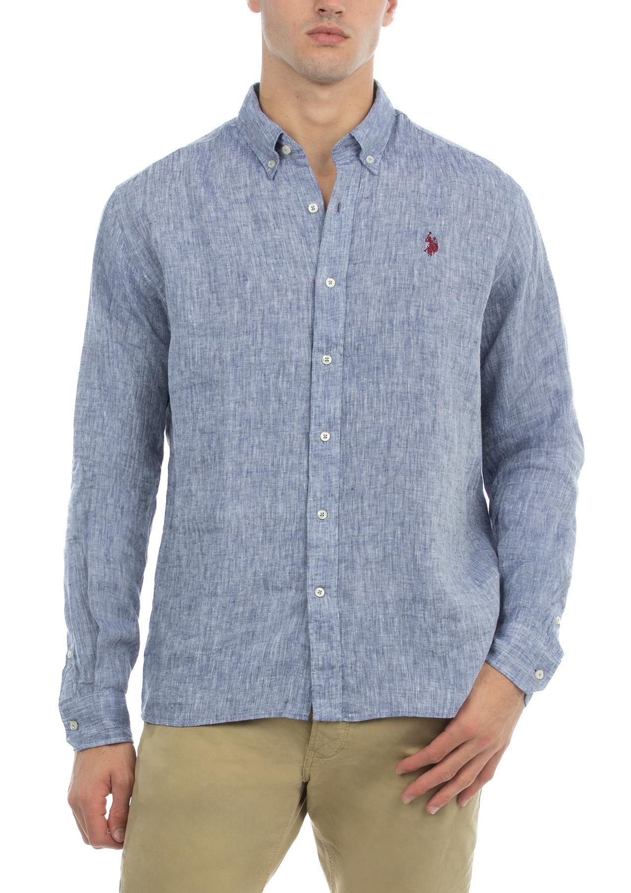 USPA Men's Linen Button-Down Collar LS Shirt Blue