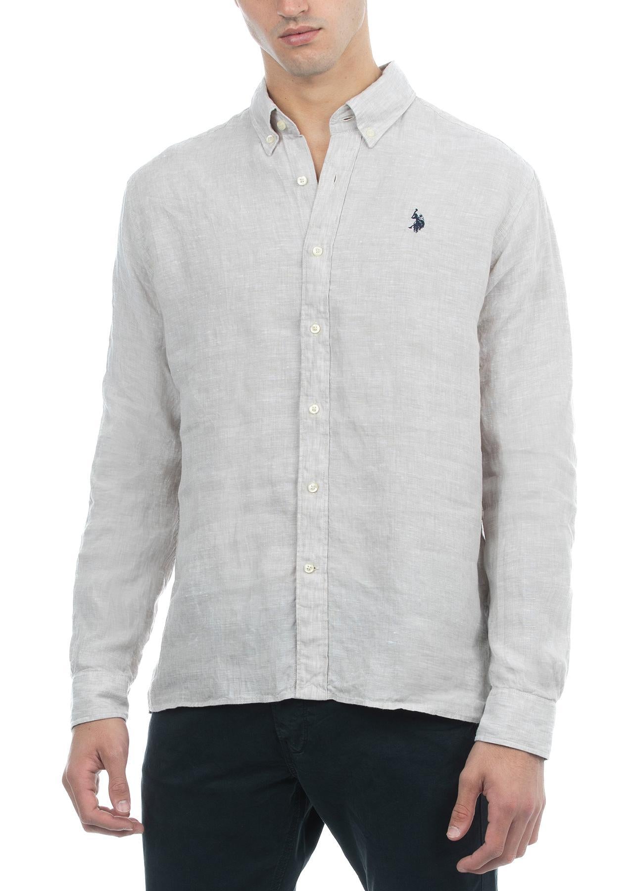USPA Men's Linen Button-Down Collar LS Shirt Natural