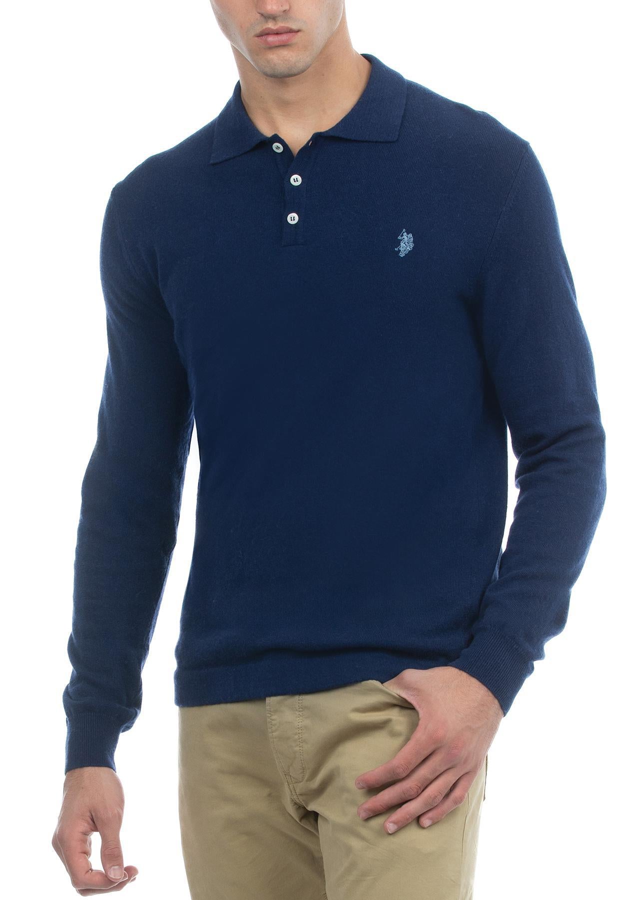 USPA Men's Alpaca/Cotton LS Sweater Knit Polo Navy