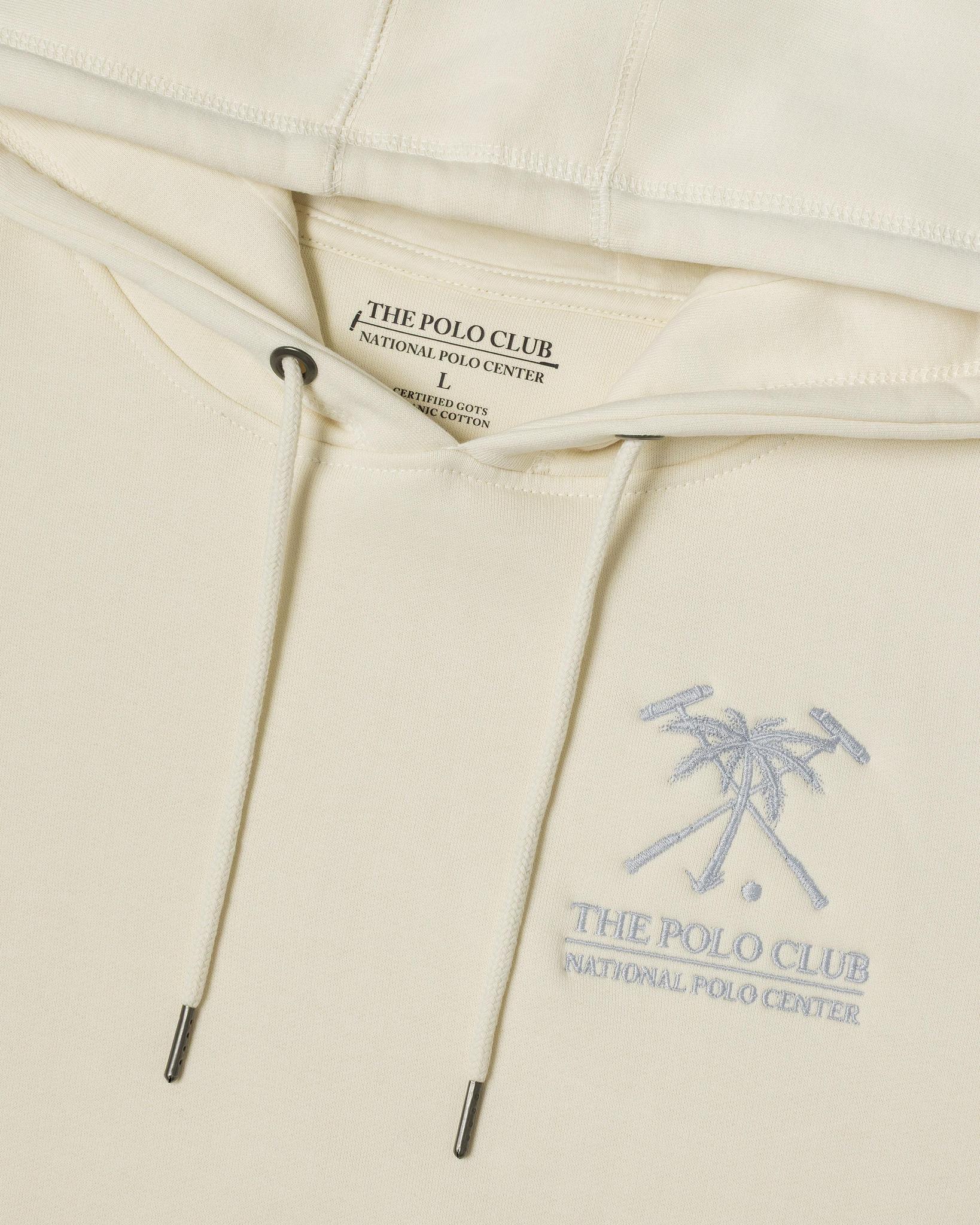 Crafted from heavyweight organic cotton fleece with a cozy brushed interior, this hoodie delivers substantial comfort with a refined, structured feel. Made using fibers grown without toxic dyes, chemical fertilizers, or pesticides, it reflects a more considered approach to everyday essentials. Reverse flatlock stitching and 4-inch wide, double-folded flat-knit side ribbing add durability and flexibility for long-term wear. The Polo Club at NPC logo is embroidered at the chest, completing a clean, understated finish.