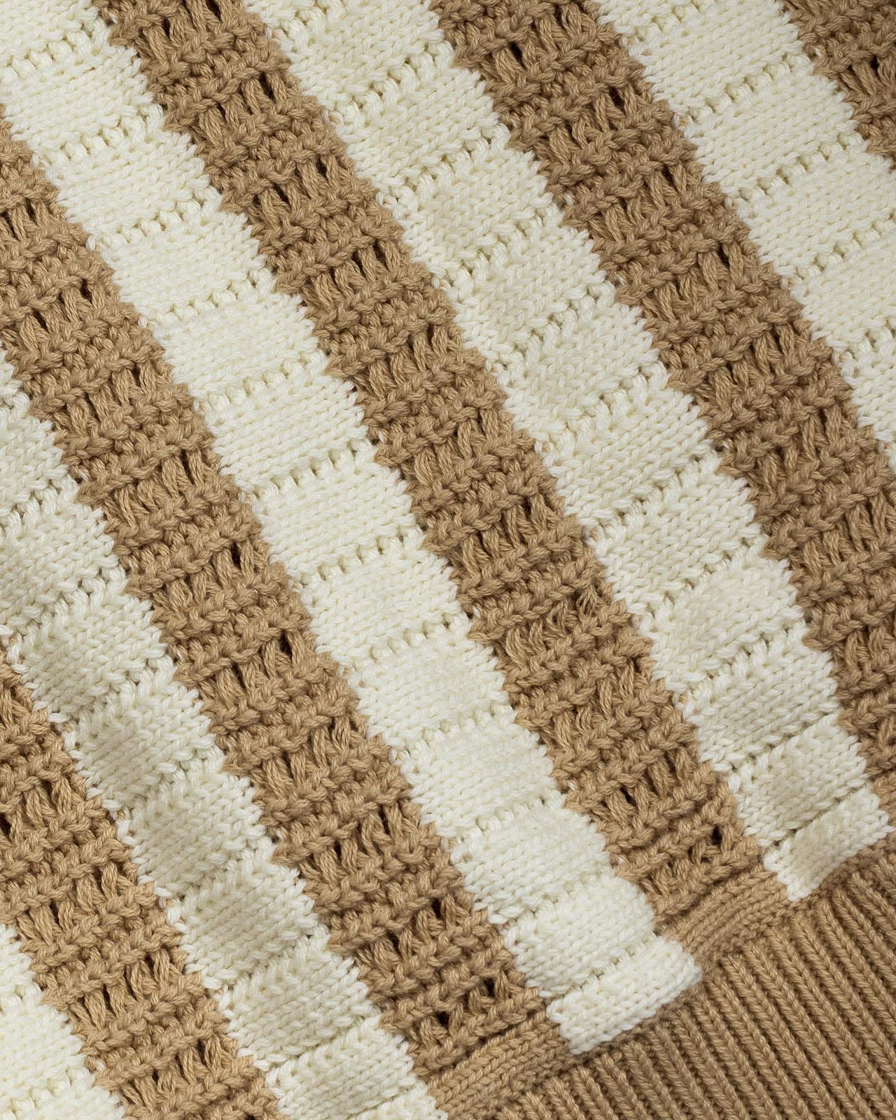 Textured with a tonal crochet knit in natural hues, this short-sleeve polo blends relaxed luxury with quiet confidence. The casual collar and button-front design lend an easy sophistication, while the Double Horsemen emblem provides a refined signature detail. Designed in our London studio, it’s a timeless piece that embodies the balance of craftsmanship and comfort.