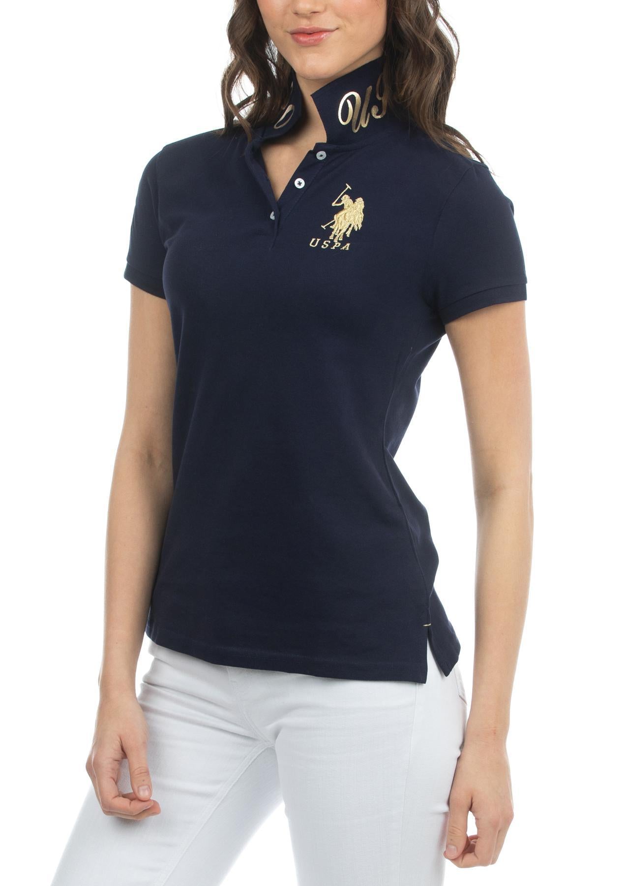 • Stylish Design: Short sleeve button-front polo with metallic embroidery