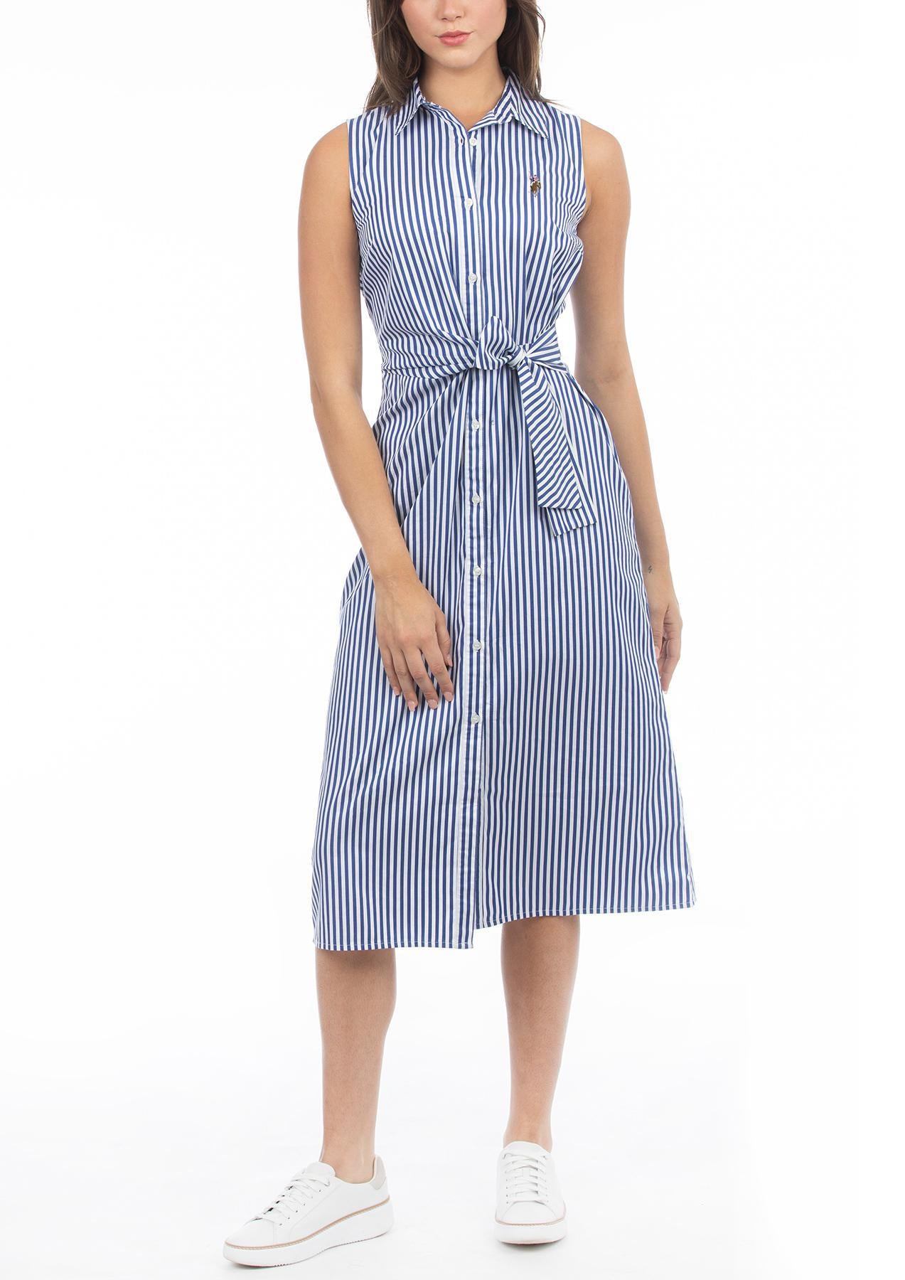 USPA Women's Stripe Tie Waist Shirt Dress Blue
